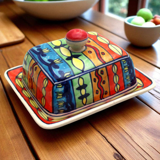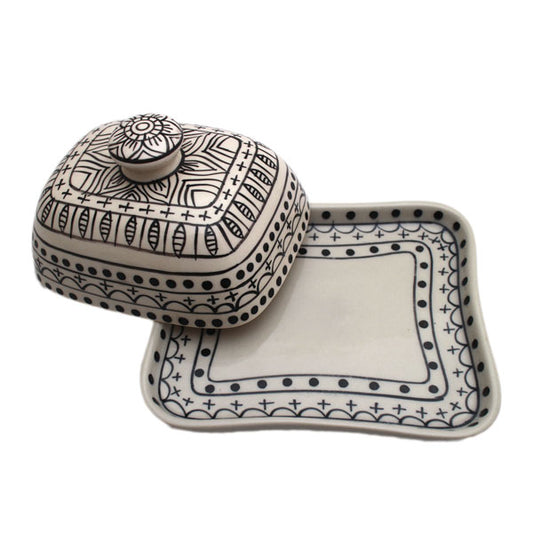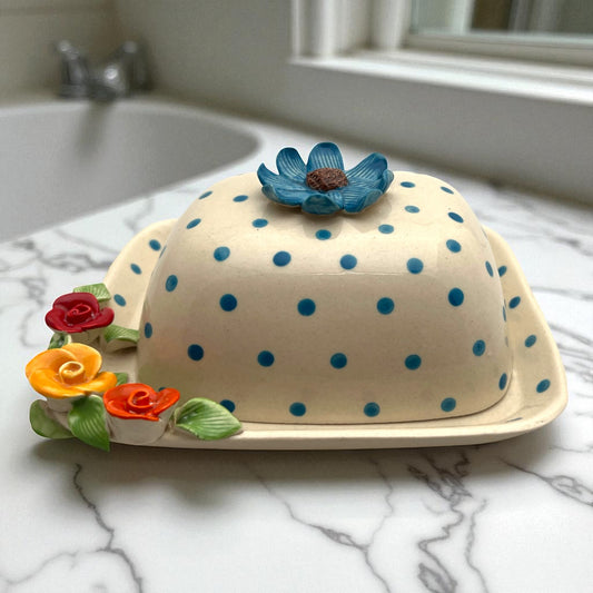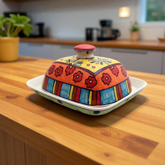 Butterdose Flower - Handbemalte Keramik mit Blumenmuster
