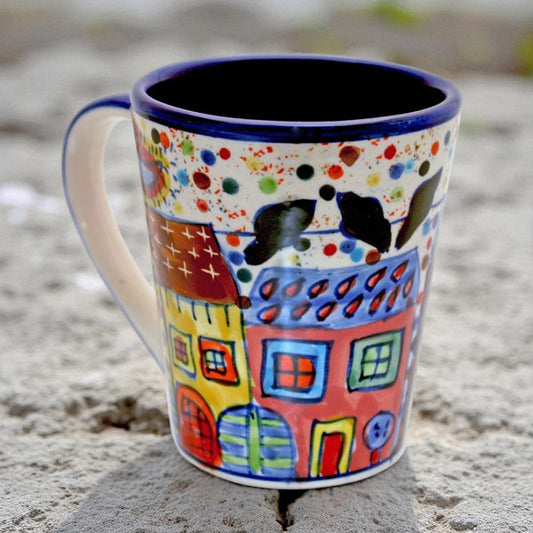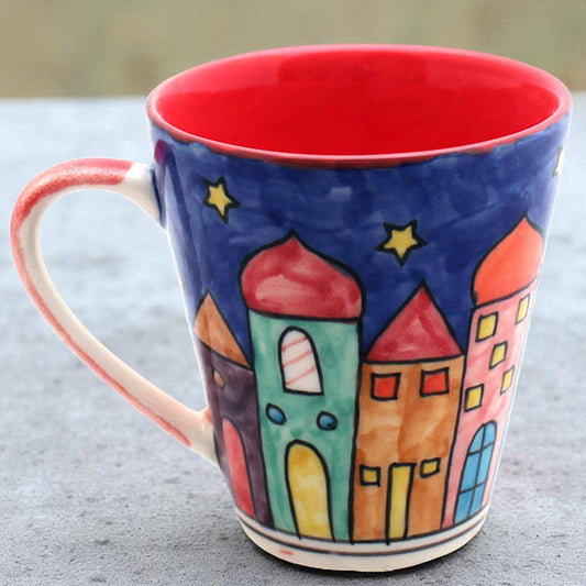 Kaffeetasse mit Stadtmotiv New Village 400ml - Handbemalte Keramik