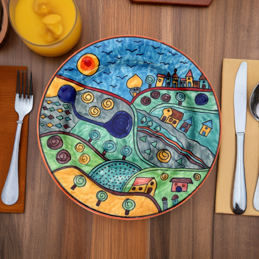 Frühstücksteller Handbemalt - Keramik Speiseteller New Village Kollektion
