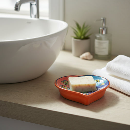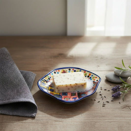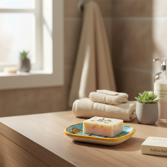 Seifenschale aus Keramik - Handbemalte Seifenablage mit Ablauflöchern