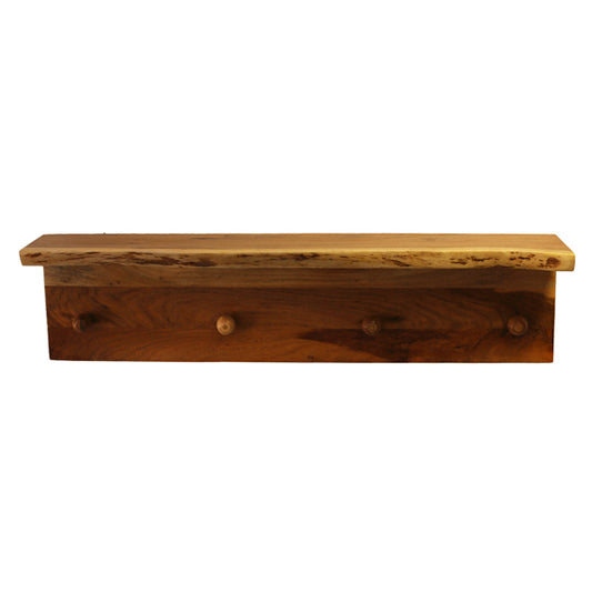 Wandgarderobe, Wandregal mit Knöpfen, Akazienholz