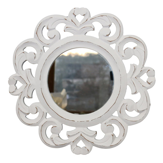Runder Wandspiegel mit geschnitztem Holzrahmen