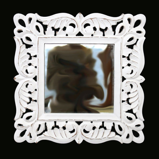 Wandornament Holz Wanddeko Silber Shabby Chic Wandbild mit Spiegel