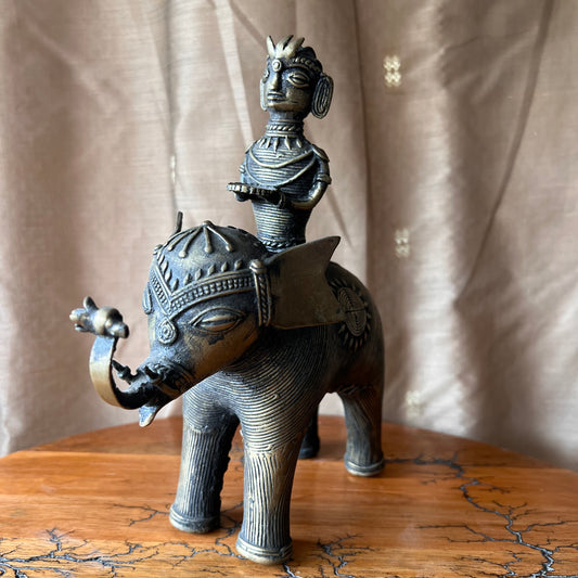 Elefant mit Reiter - Bastar Art Vintage Messingfigur Indien
