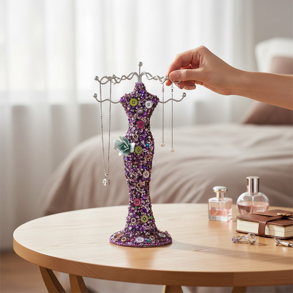 Diese dekorative Schmuckpuppe ist die perfekte Lösung für die stilvolle Aufbewahrung und Präsentation Ihrer Ketten, Armbänder und Schmuckstücke. Mit ihrer eleganten rosa Farbe wird sie zum echten Hingucker in jedem Schlafzimmer oder Ankleidezimmer.