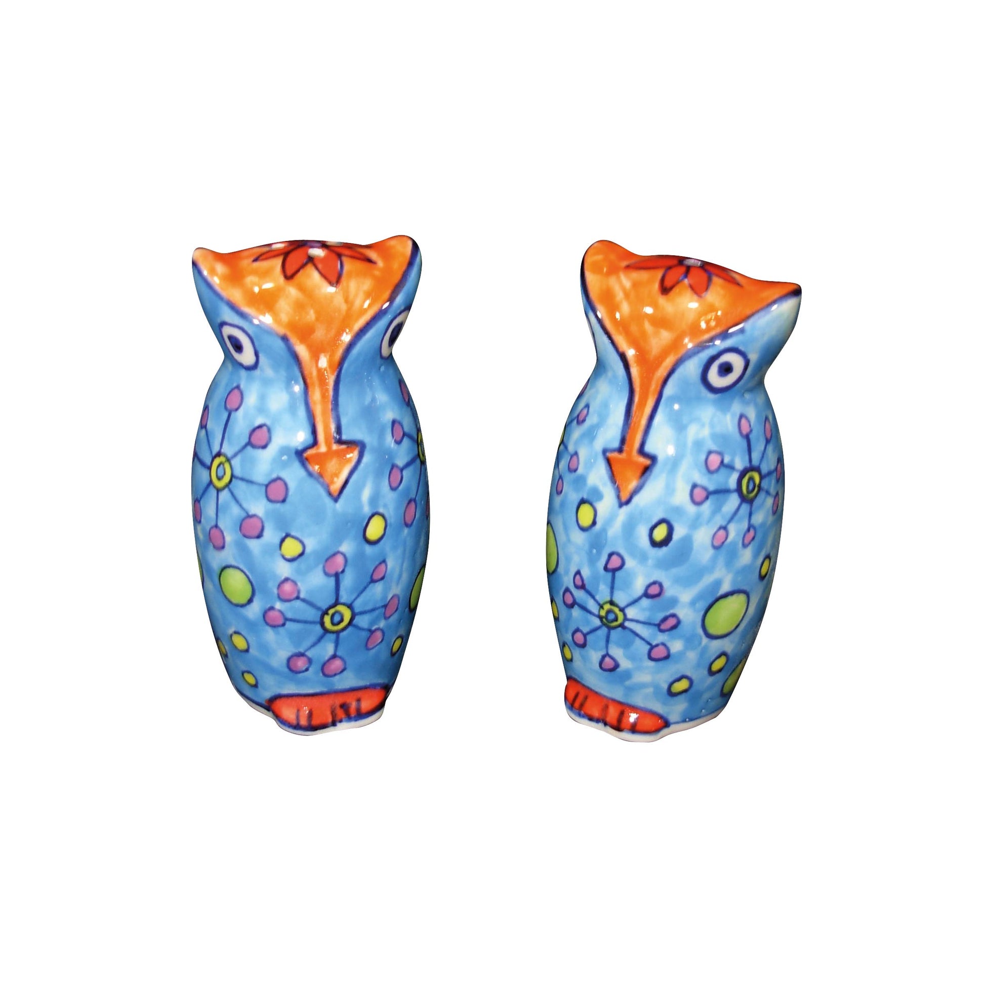 Salz und Pfefferstreuer Eule Keramik handbemalt - Gewürzstreuer