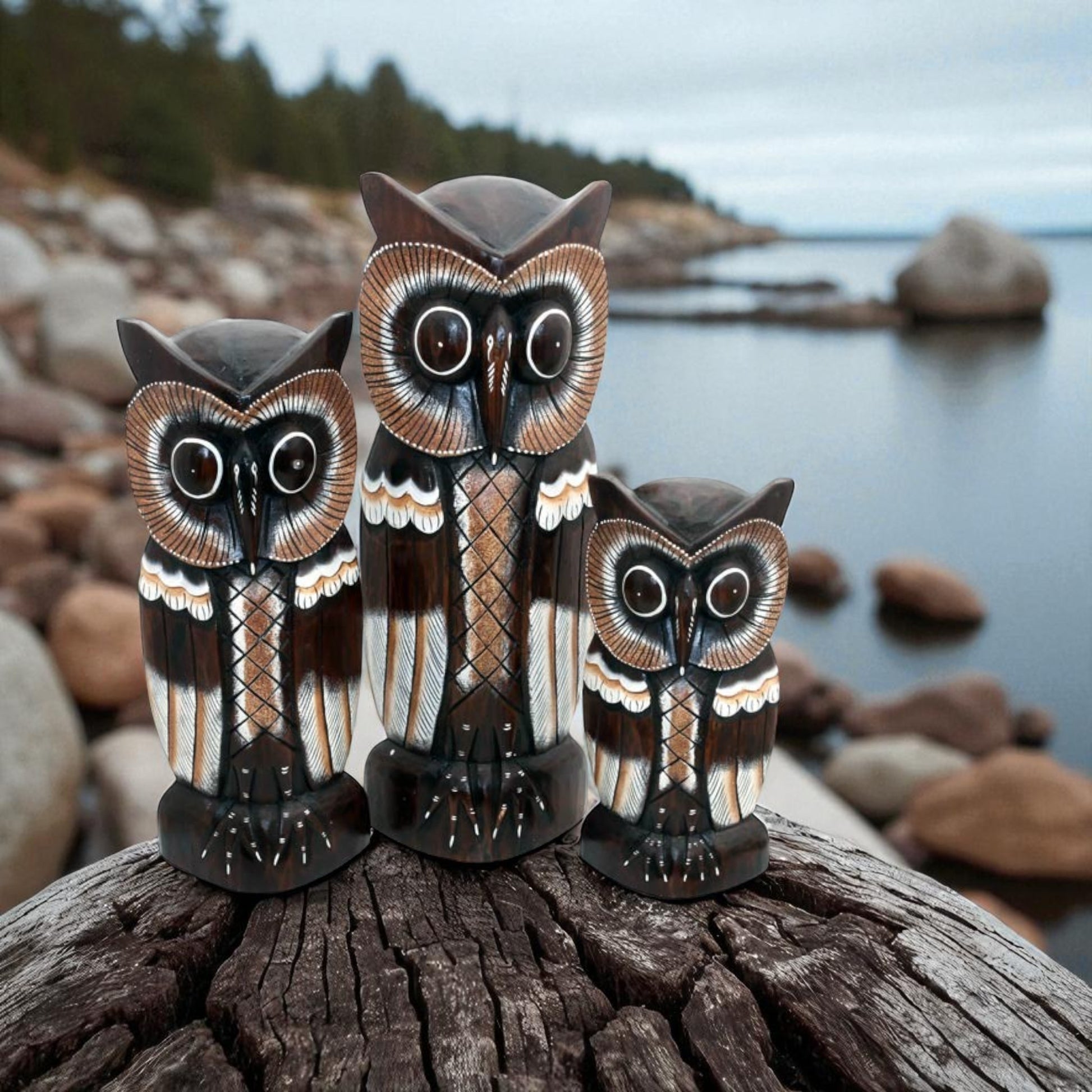 Verleihen Sie Ihren Räumen mit diesen bezaubernden Holz-Eulen eine warme, natürliche Atmosphäre und bringen Sie ein Stück Natur in Ihr Zuhause.
