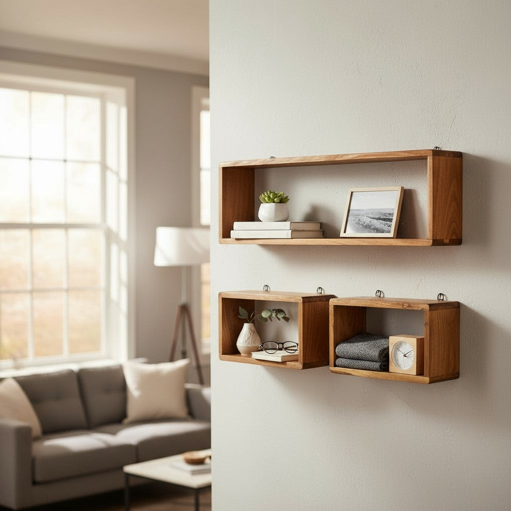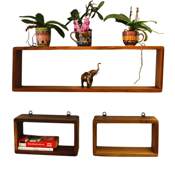 Schaffen Sie mit diesem stilvollen Wandregal-Set mehr Ordnung und verleihen Sie Ihren Räumen eine warme, natürliche Atmosphäre.