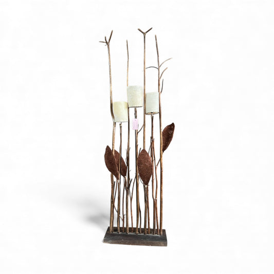 Tischlampe handgefertigt - Holzlampe mit Ästen cremeweiß