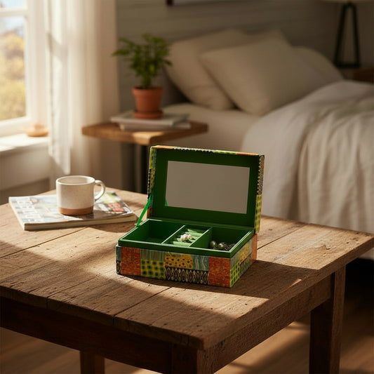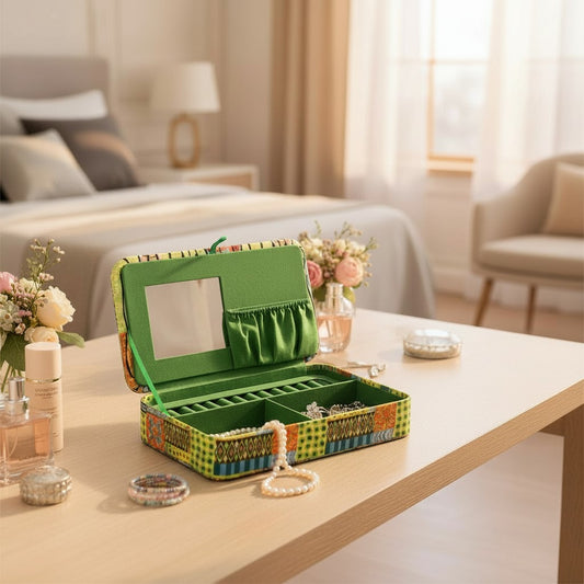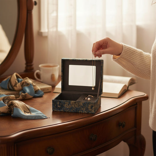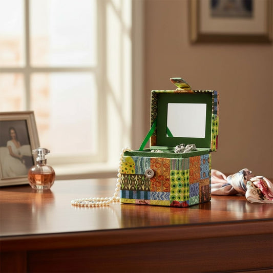 Schmuckschatulle türkis handbestickt - Mit Spiegel & Ringhalter