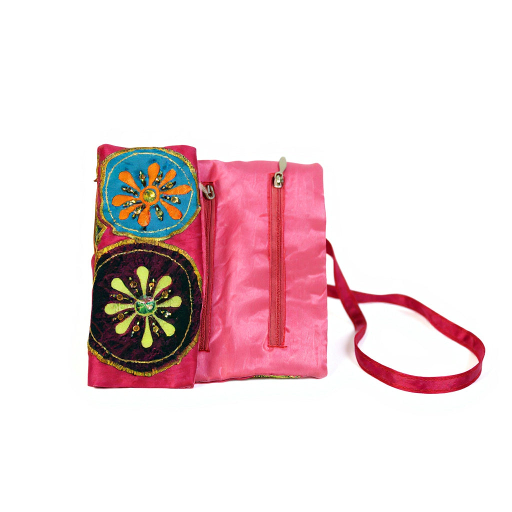 Jewelery roll embroidered with satin combined, perfect for travel, 3 zip compartments, ring strip, ribbon to tie