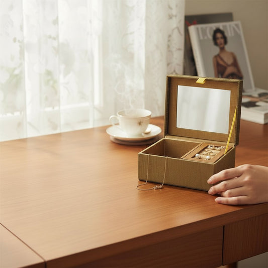 Schmuckschatulle türkis handbestickt - Mit Spiegel & Ringhalter