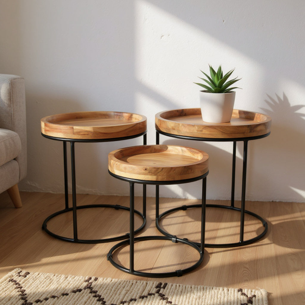 -Material: Mango wood with frame made of robust metal painted in black