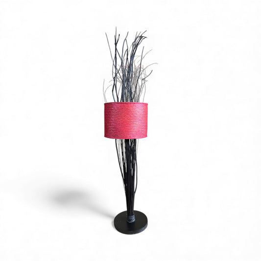 Moderne Holz-Stehleuchte mit rotem Schirm - Handgefertigt