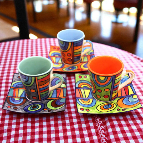Notre tasse à expresso en céramique de haute qualité est une véritable œuvre d'art : façonnée et peinte à la main dans une éclatante couleur orange, chaque tasse est unique et apporte une touche méditerranéenne à votre cuisine.