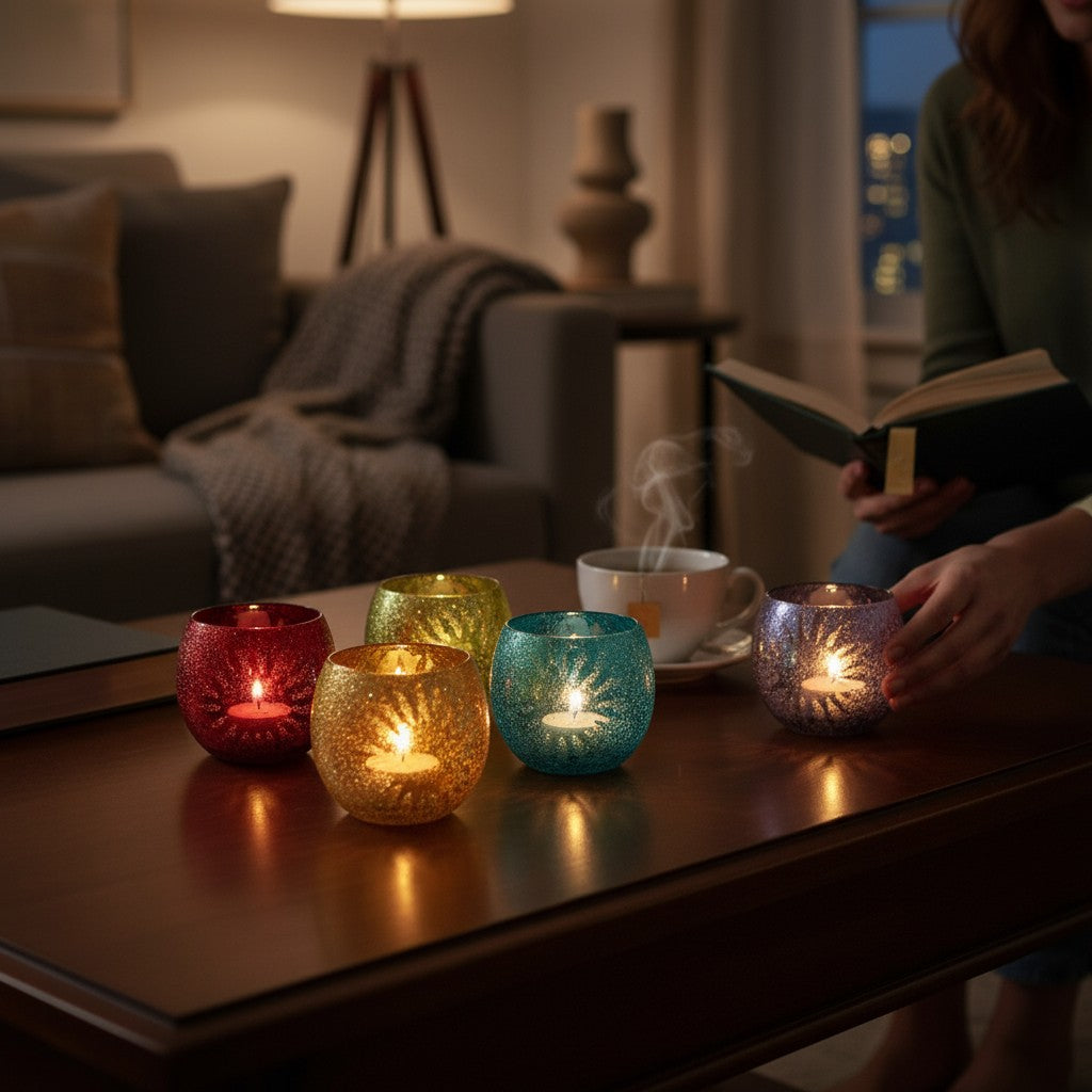 Porte-bougies chauffe-plat à motif soleil – Lot de 6 couleurs
