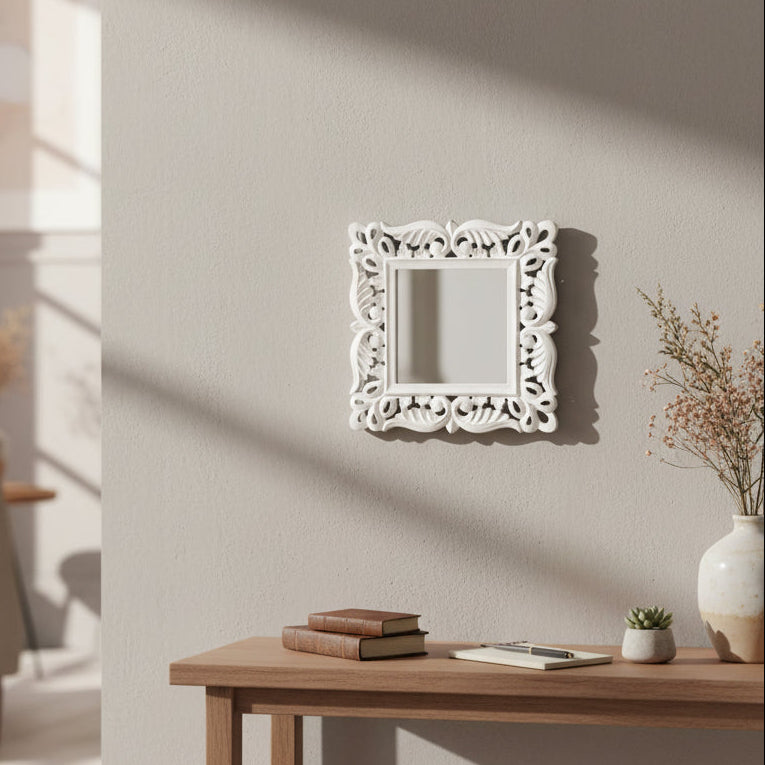 Miroir décoratif avec cadre en bois courbé.