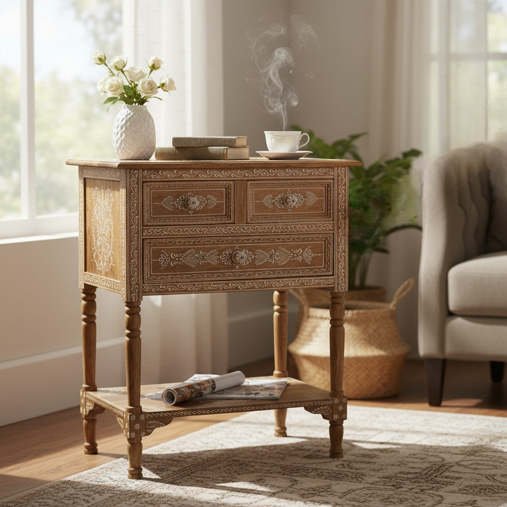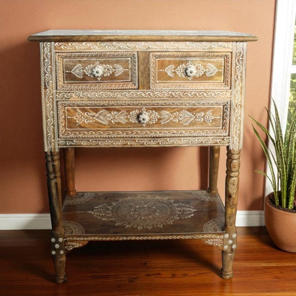 ITA-268Buffet artisanal orné d'une peinture mandala artistique