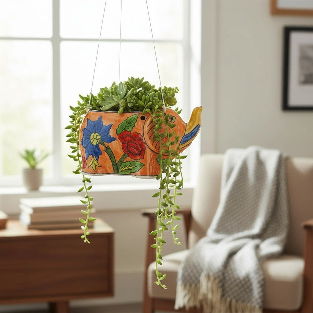 - Handbemalter Hänge-Blumentopf in Elefantenform