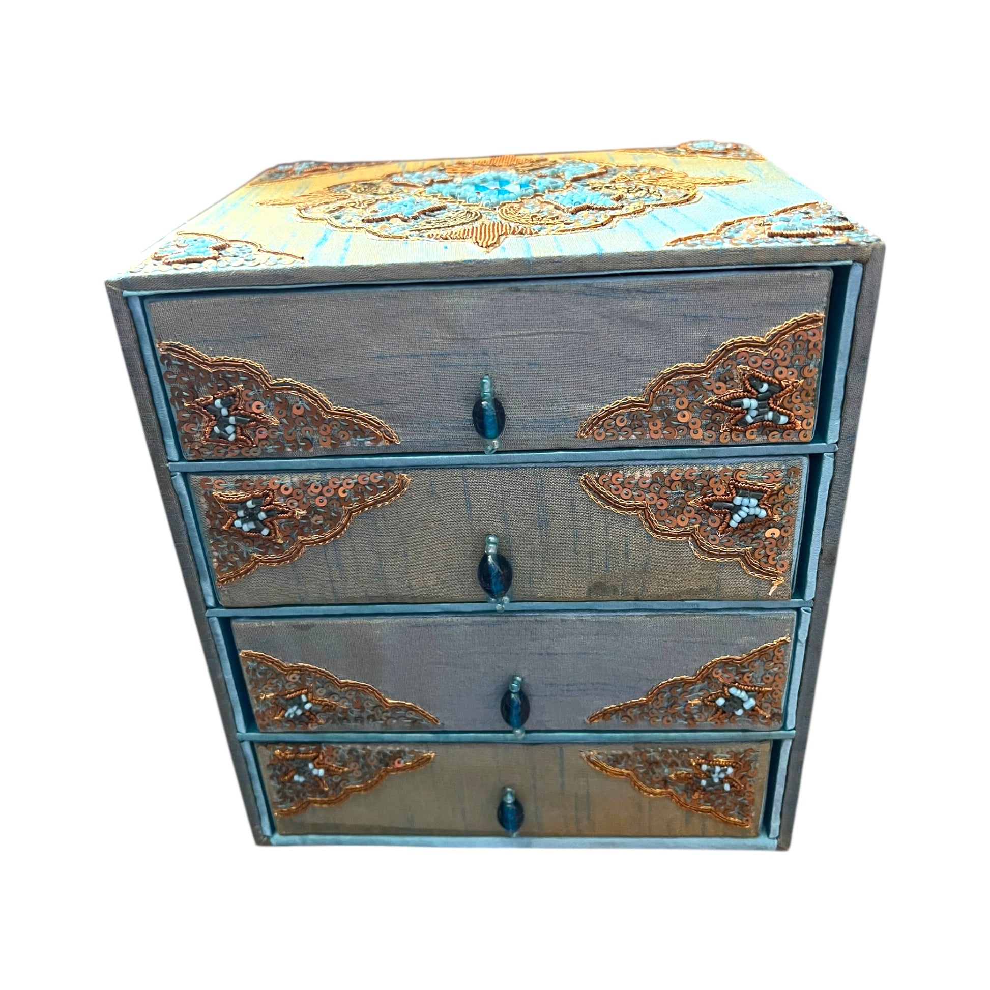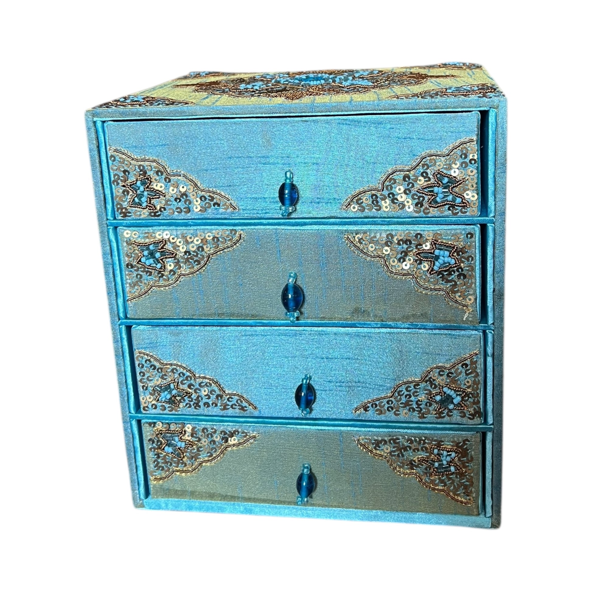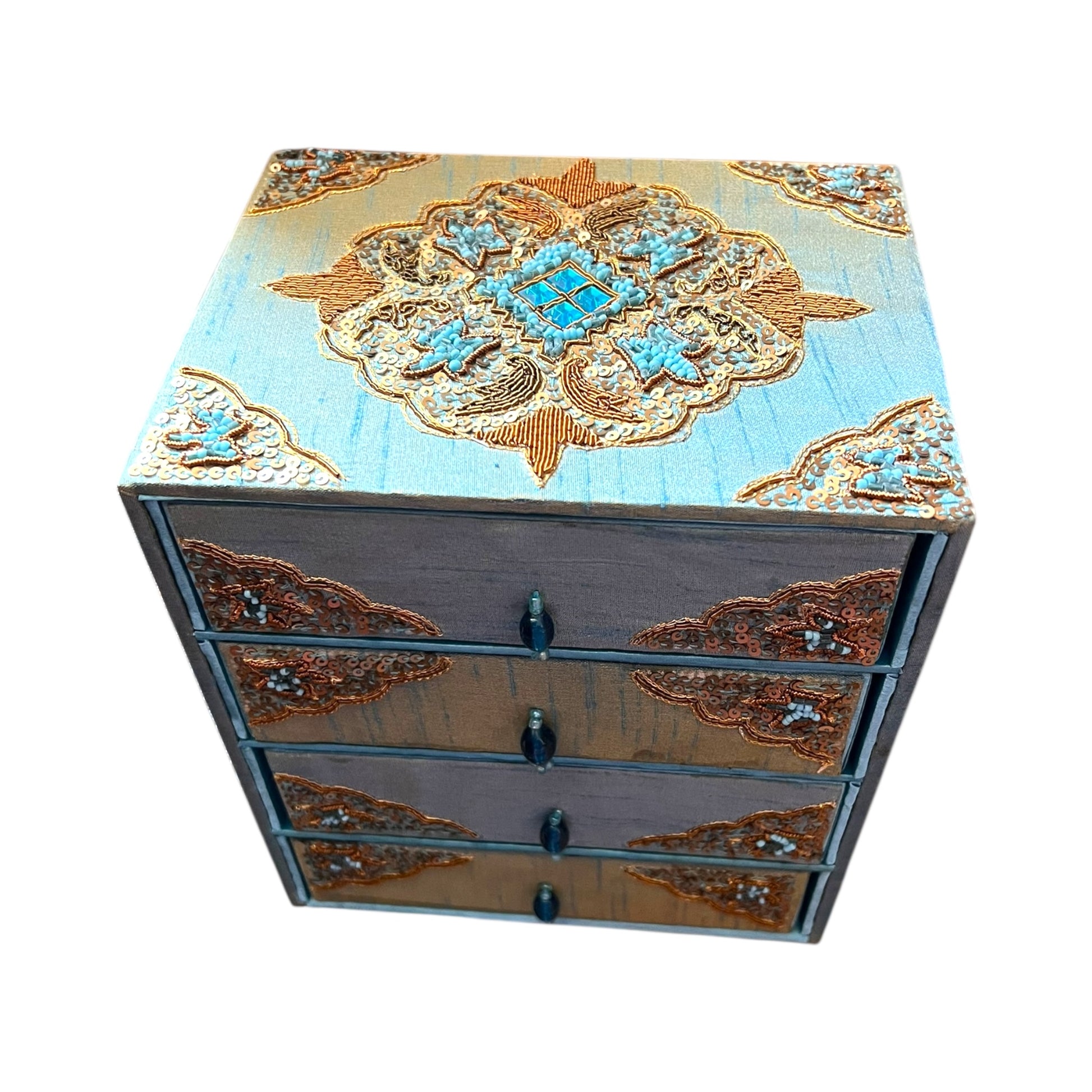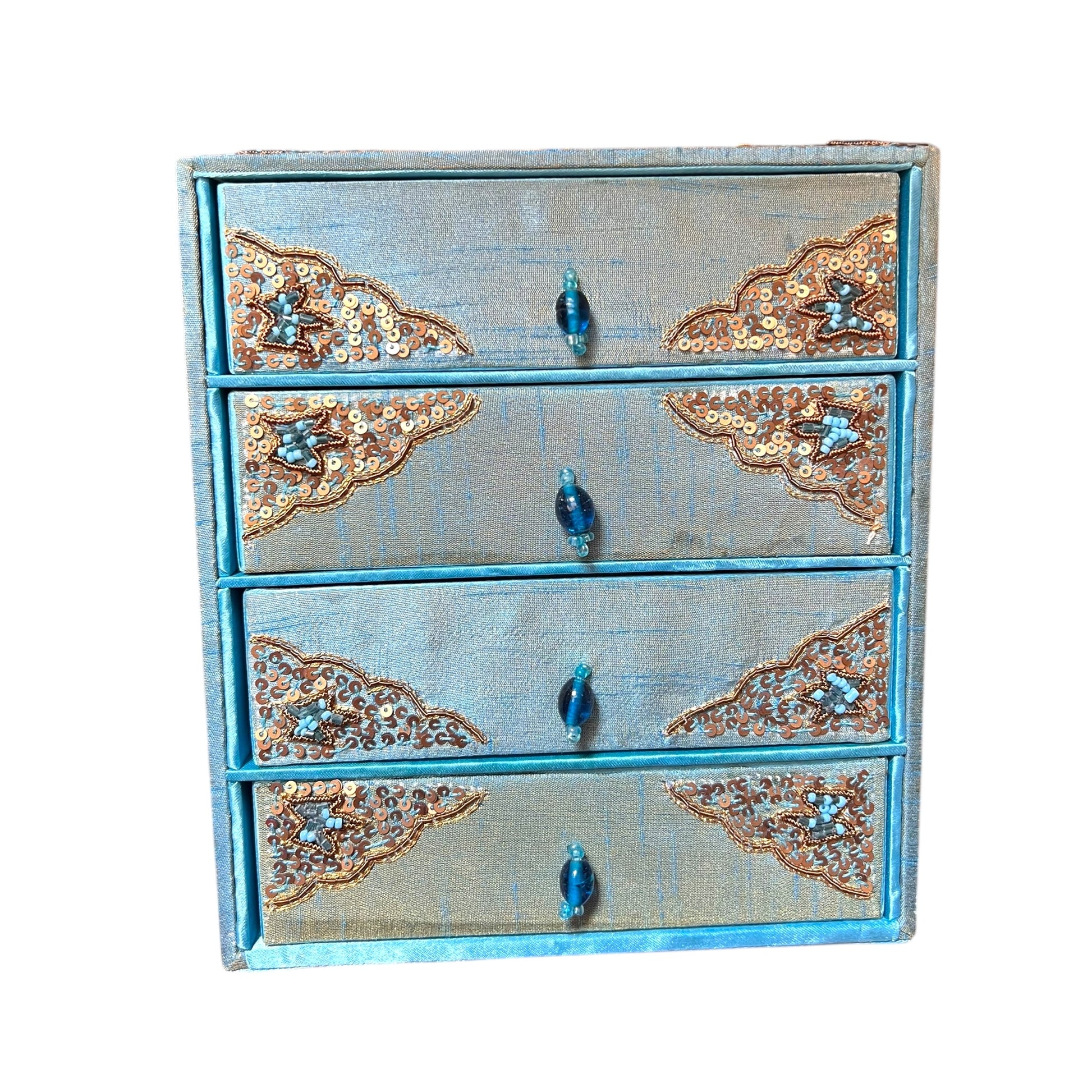 Pièce exclusive faite à la main : Ce magnifique coffret à bijoux a été brodé à la main avec amour et décoré de perles scintillantes et de paillettes chatoyantes.