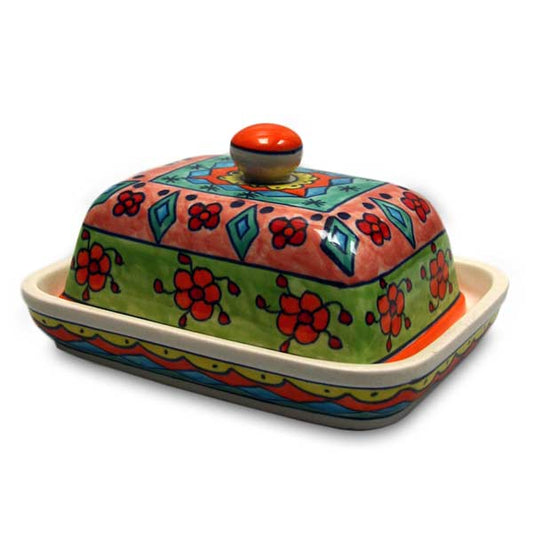 Campana rotonda in ceramica per formaggio - Burriera dipinta a mano
