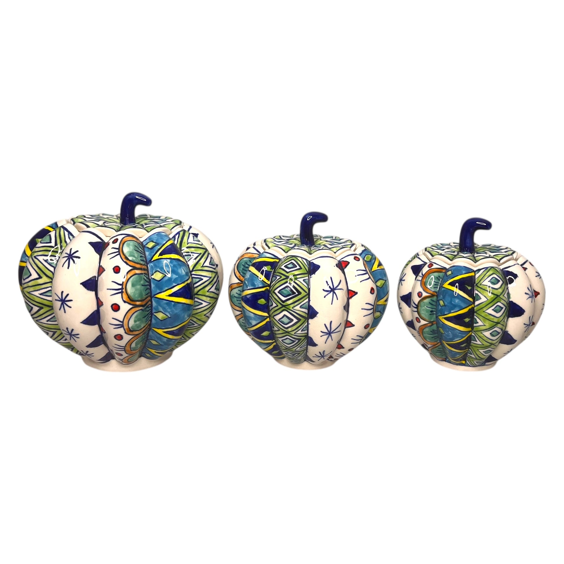 Contenitori in ceramica dipinti a mano in set da 3 - design zucca