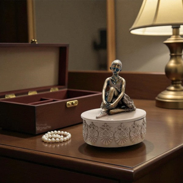 Questa splendida scatola a forma di ballerina è un vero colpo d'occhio e unisce funzionalità e design elegante. Perfetta per gioielli, primi dentini da latte o altri piccoli tesori.
