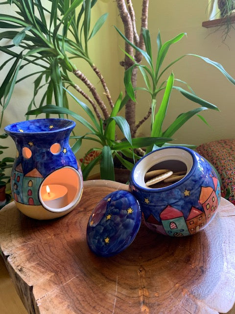 Scopri fragranze rilassanti con la nostra lampada profumata in ceramica di alta qualità. Questa lampada profumata, dipinta a mano con cura, è perfetta per l'uso con oli essenziali e oli profumati.