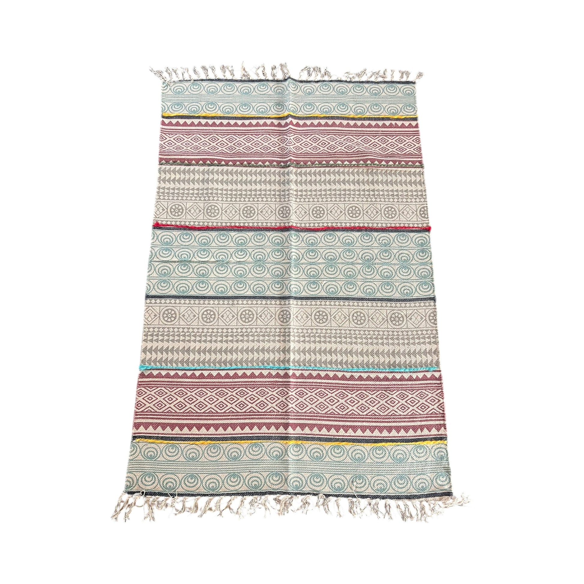 Aggiungi un tocco di colore vivace alla tua casa con questo splendido tappeto colorato con frange giocose . Misura 150 cm x 90 cm ed è perfetto per soggiorni, camere da letto o camerette per bambini.