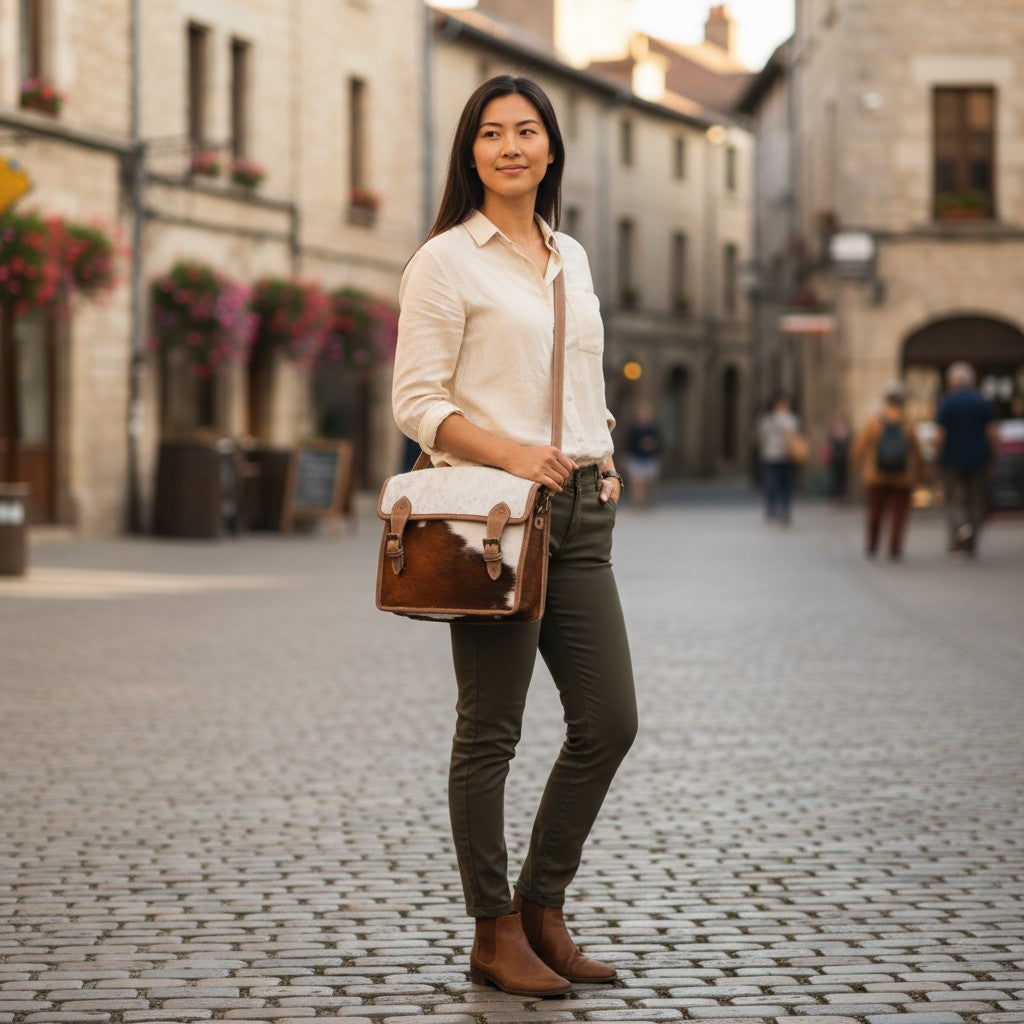 Borsa a tracolla in pelle di vacchetta - Fatta a mano e unica