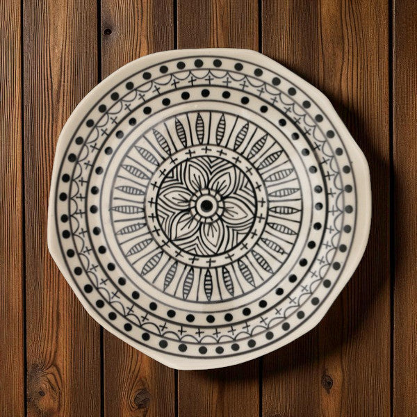 Handbemalter Frühstücksteller mit Mandalabemalung schwarz/weiß