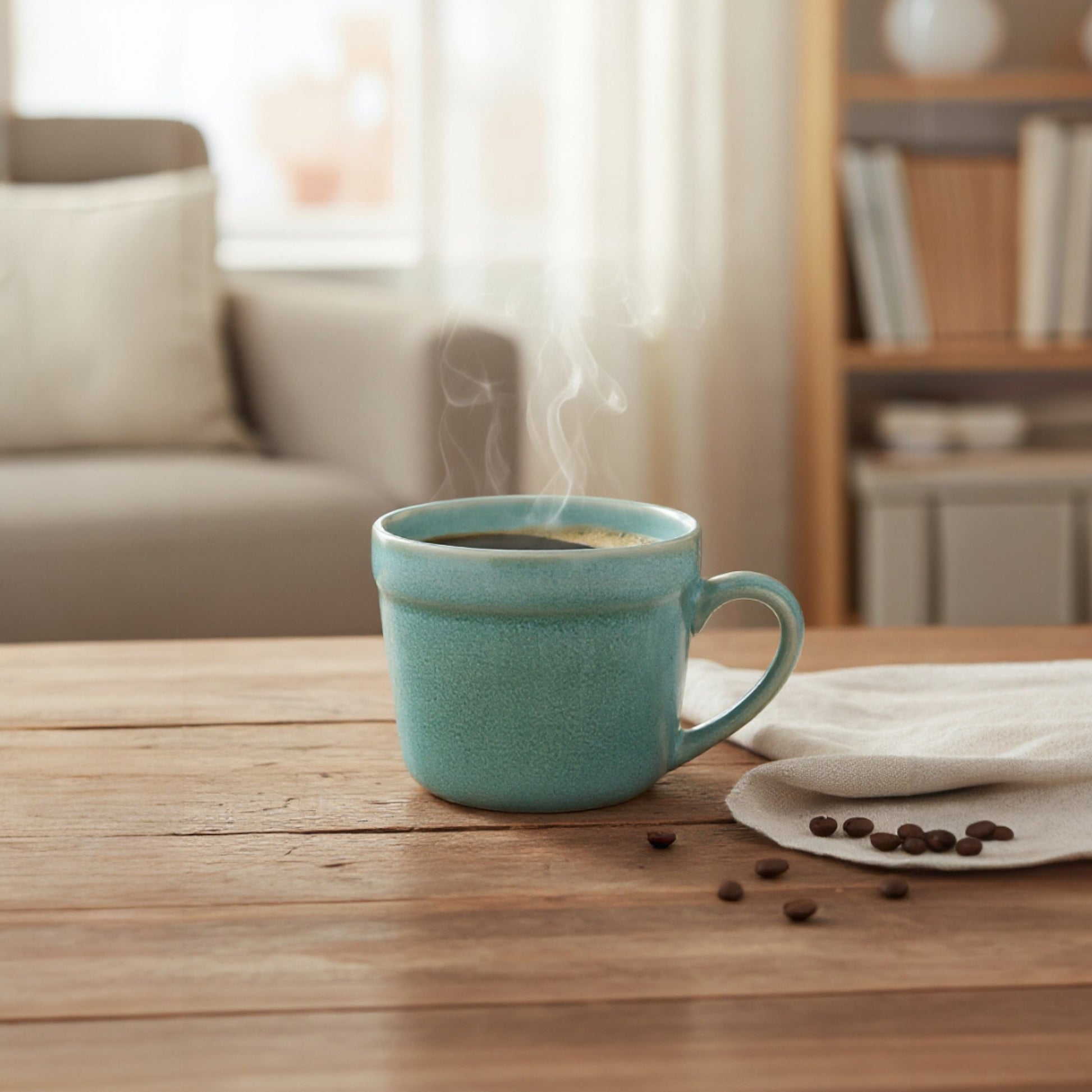 - Handgefertigte Keramik-Tasse in türkis