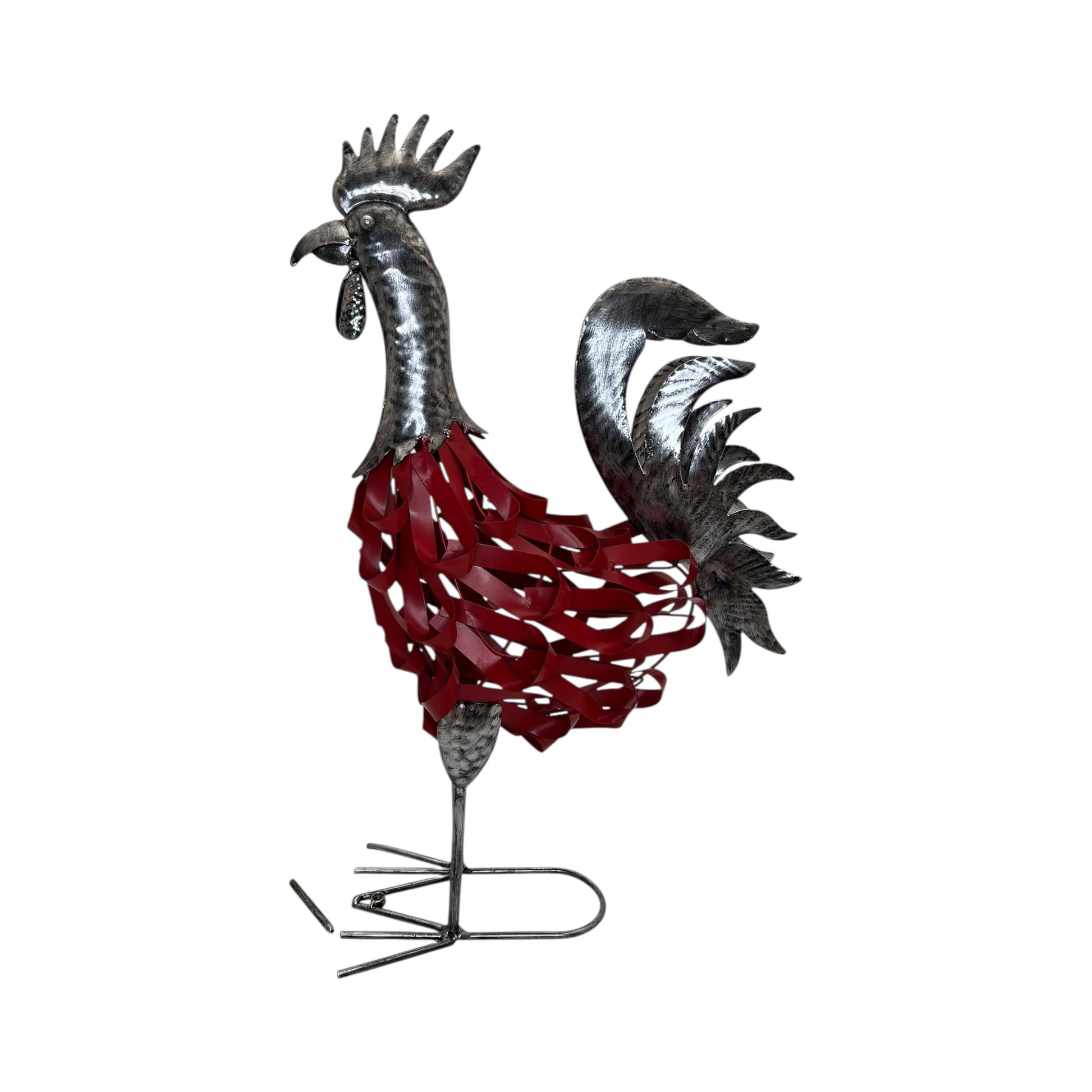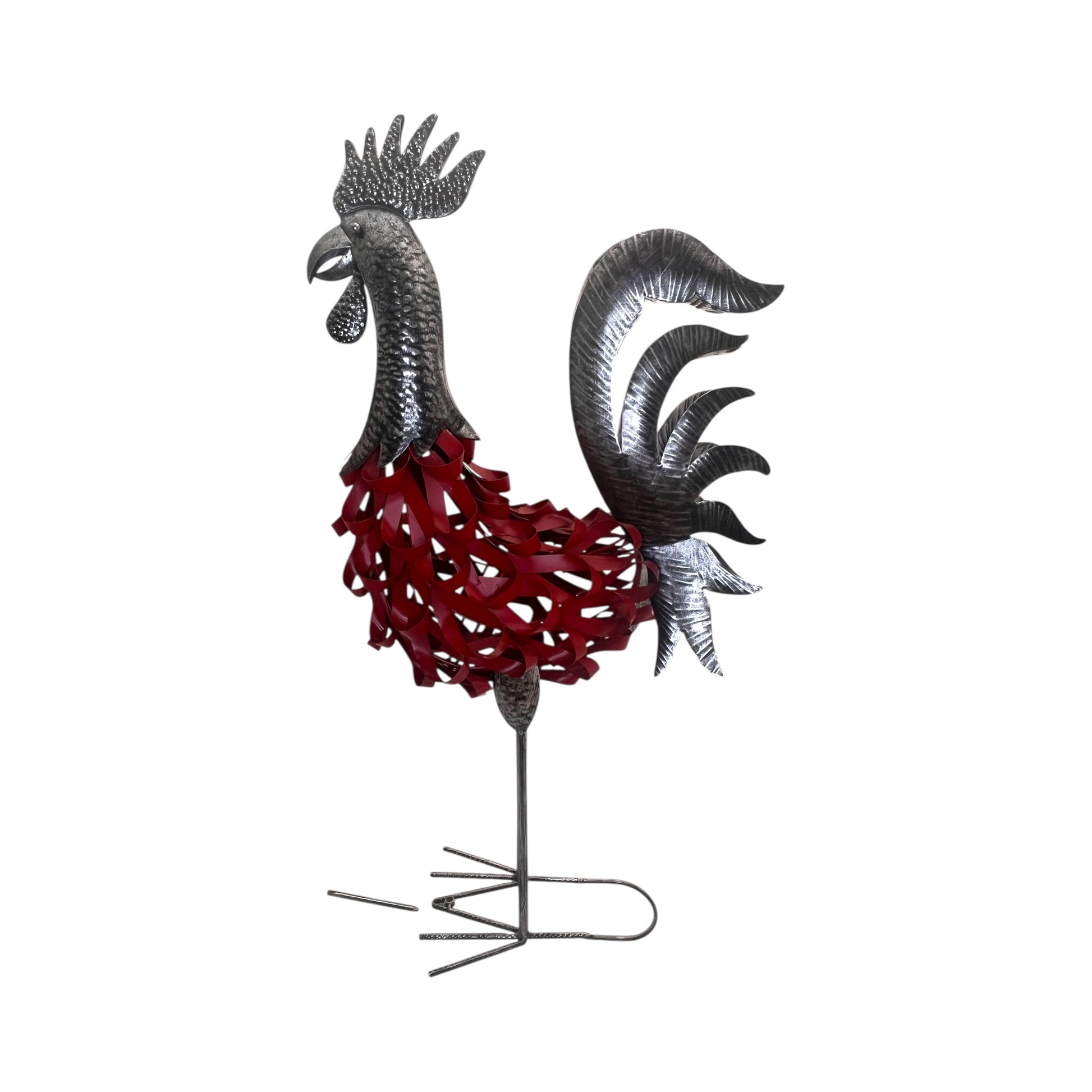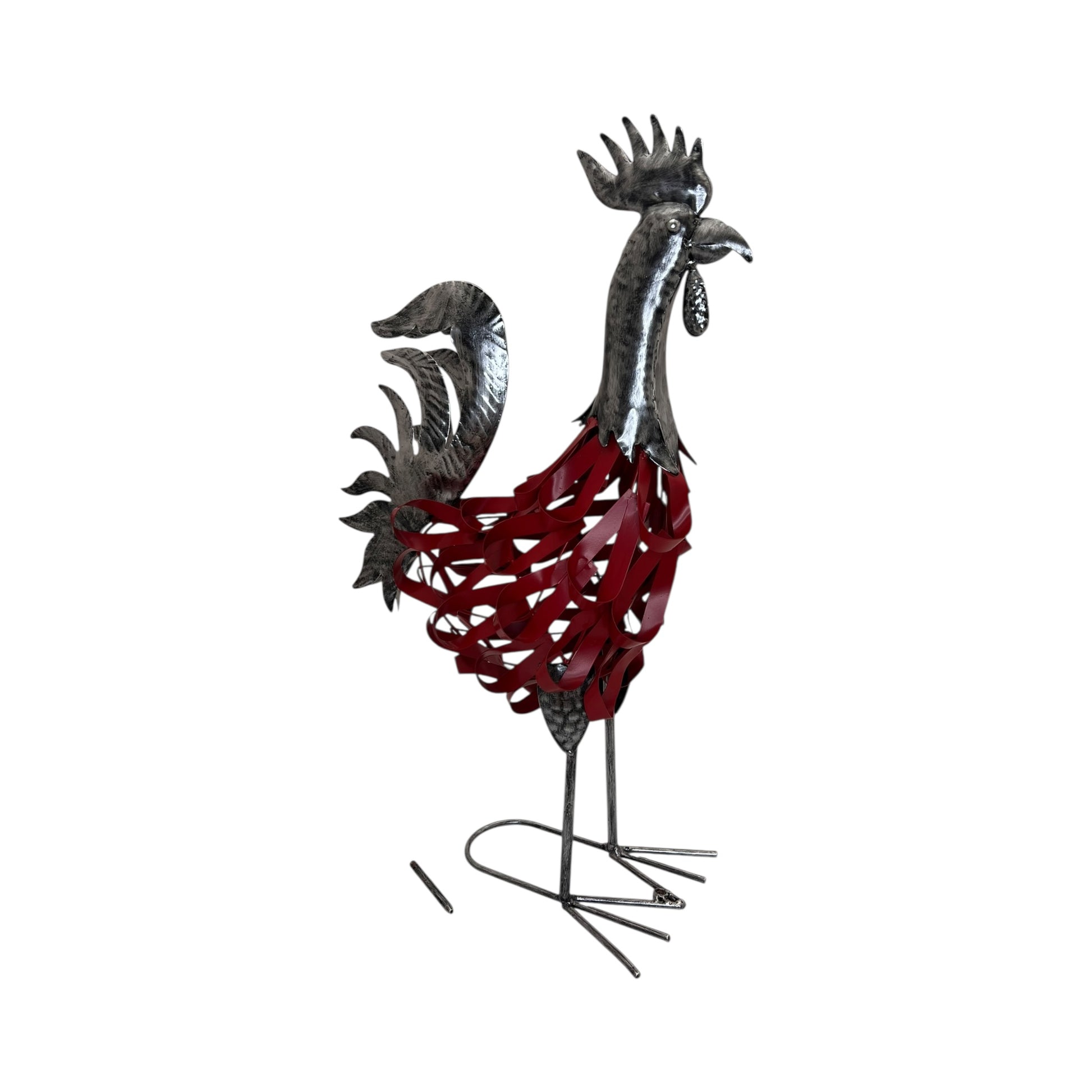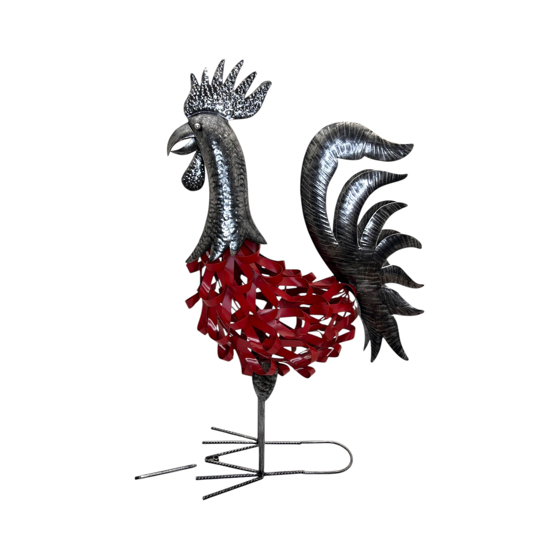 Bringen Sie mit diesem lebhaften roten Metall-Hahn Farbe und Charme in Ihren Garten! Die praktische Spitze ermöglicht ein einfaches Feststecken in die Erde, sodass die Figur sicher und dekorativ steht. Ein fröhlicher Blickfang, der Ihrem Außenbereich eine verspielte Note verleiht.