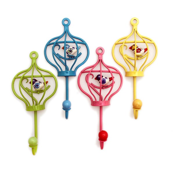 Bunter Metallhaken als Käfigform mit Vogel drin,Kleiderhaken für Bad Küche usw.
