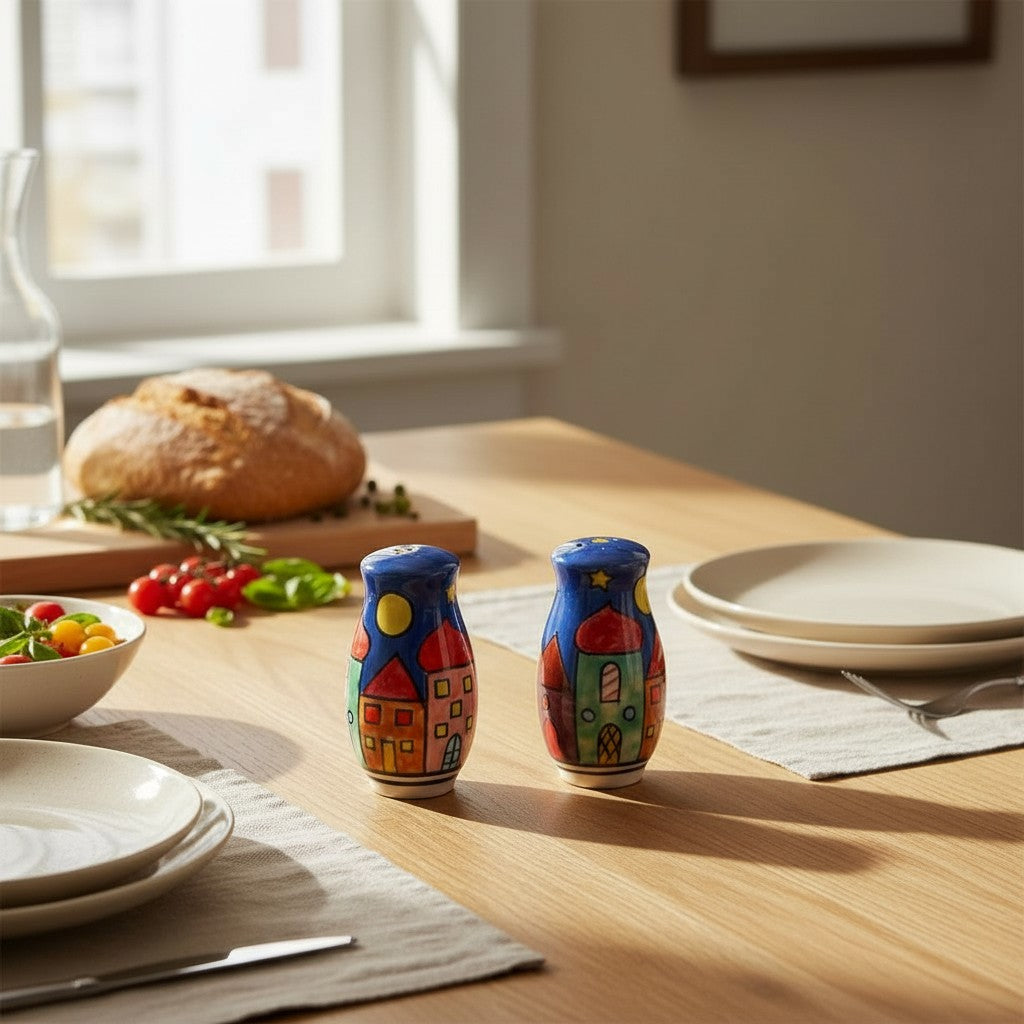 Diese liebevoll handbemalten Gewürzstreuer bringen Stil und Funktionalität auf Ihren Esstisch.