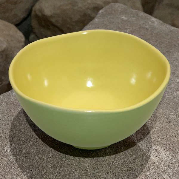 Lass dich von der geschwungenen Keramik Müslischüssel in Grün und Gelb verführen! Die außergewöhnliche Farbkombination macht jedes Gericht zum Augenschmaus.
