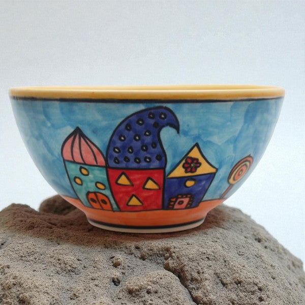 Diese liebevoll handbemalte Keramikschale aus hochwertigem Steinzeug ist die perfekte Kinderschale für Jung und Alt. Mit ihren bunten, leuchtenden Farben und dem fröhlichen Design bringt sie gute Laune an jeden Frühstückstisch.
