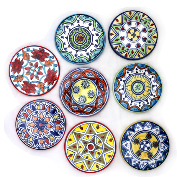 Dieser kleine, handbemalte Keramik-Untersetzer ist perfekt, um deinen Tisch vor Kratzern und Hitze zu schützen. Mit praktischen Stoppern an der Unterseite bleibt er sicher an seinem Platz und sorgt dafür, dass Tassen oder Töpfe nicht wegrutschen. Die zufällige Farbauswahl bringt dabei eine fröhliche Überraschung auf deinen Tisch!